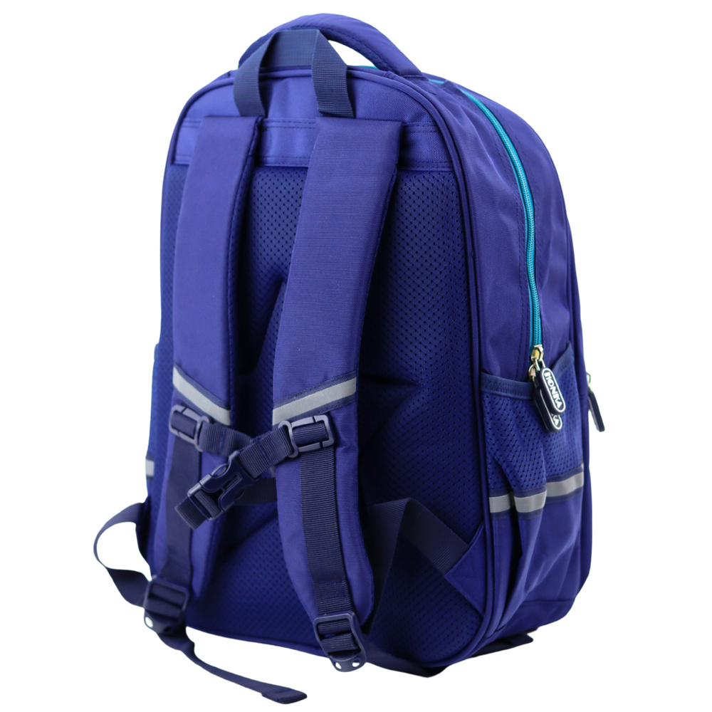 Temno moder šolski nahrbtnik z veselim motivom dinozavrov je idealna možnost za šoloobvezne otroke. Izdelana je iz trpežnega materiala in zasnovana za vsakodnevno uporabo, združuje funkcionalnost z privlačnim dizajnom, hkrati pa skrbi za pravilno držo otroka.