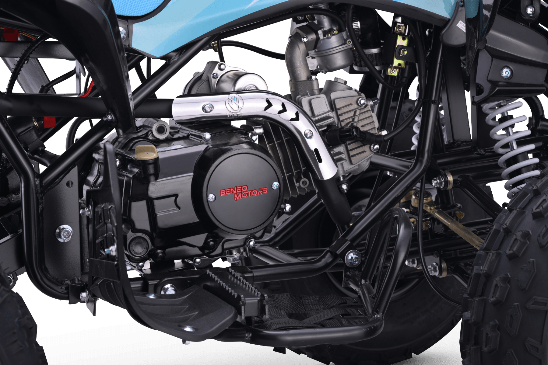 Beneo Motors ZXT je opremljen s 125-kubičnim motorjem, ki zagotavlja popolno ravnovesje moči in nadzora na tem modelu. Ne glede na to, ali gre za grob ali lahek teren, bo ta štirikolesnik poskrbel za vznemirljivo vožnjo tudi za izkušene voznike.