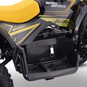 Predstavljamo vam Beneo Motors Veloci – idealen štirikolesnik za otroke od 3 do 6 let z vsemi varnostnimi funkcijami: 3-položajni omejevalnik hitrosti (5-15-22 km/h), kolutne zavore, ščitnik za verigo.