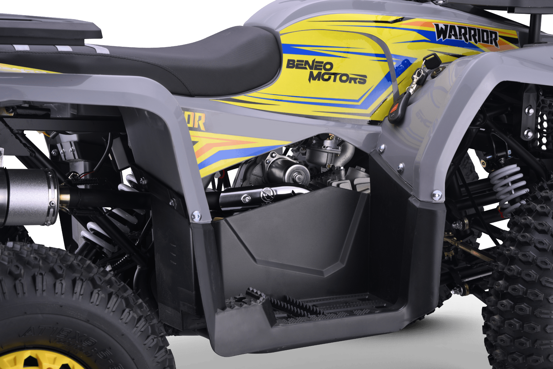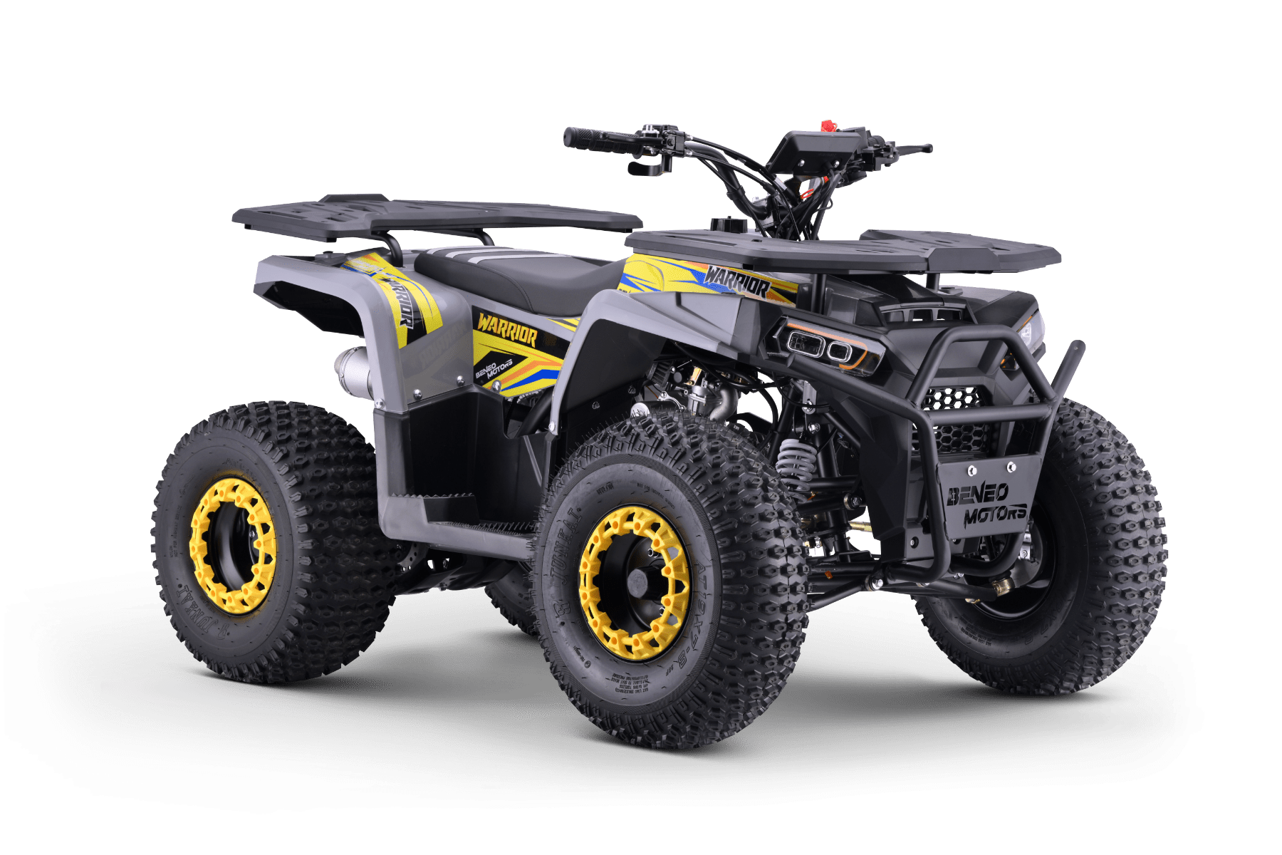 Beneo Motors Warrior je opremljen s 125-kubičnim motorjem, ki ponuja idealno ravnovesje med močjo in nadzorom. Ne glede na to, ali gre za neravni ali gladki teren, ta štirikolesnik zagotavlja udobno vožnjo tudi za izkušene voznike.