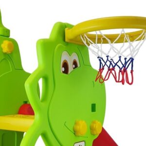 V kompletu je tobogan iz dvojne plastike z dolgim in širokim toboganom. Široke in stabilne stopnice, ki se nahajajo na zadnji strani tobogana, vam bodo omogočile varen vzpon na vrh. Na vrhu stene, ki ščiti tobogan, je nameščen obroč s košarkarsko mrežo .