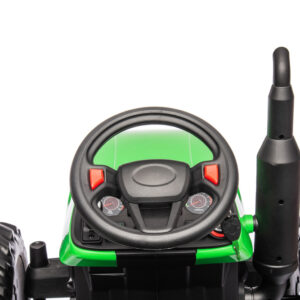 Traktor je zasnovan za najvišjo varnost in udobje otrok: opremljen je z varnostnimi pasovi, samodejno zavoro, kakovostnimi EVA gumijastimi kolesi in trpežnim plastičnim sedežem. Starši lahko vozilo nadzirajo z naprednim 2.4G daljinskim upravljalnikom, ki vključuje tudi funkcijo zasilne zavore.
