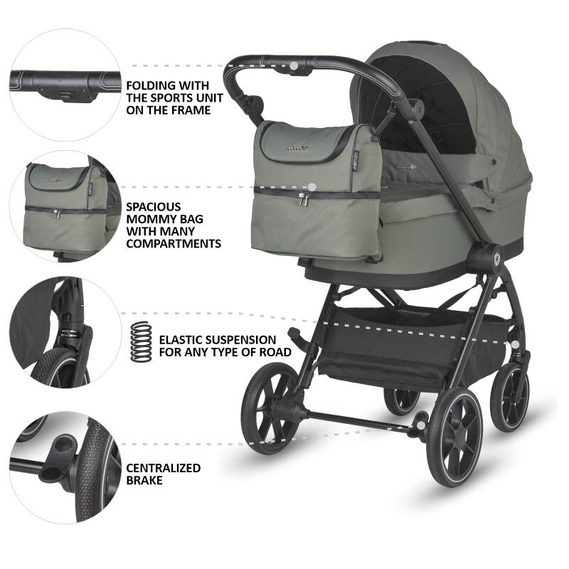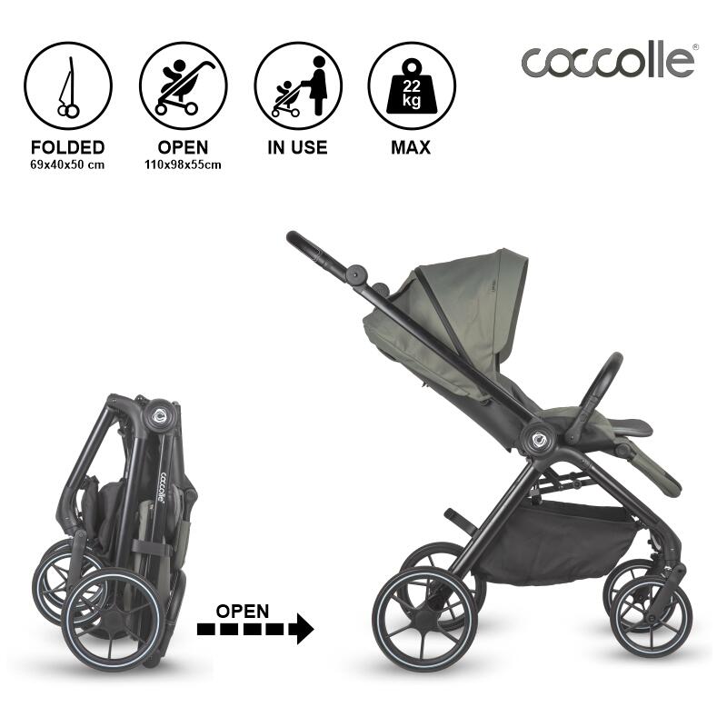 Domov | Otroški vozički | Otroški voziček 2v1 Coccolle Serry Moss zelena in stolček za hranjenje Ziti