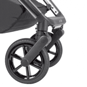 Ogrodje: Otroški voziček Omega je opremljen s čvrstim in zanesljivim ogrodjem, ki zagotavlja stabilnost in vzdržljivost med premikanjem. Velika kolesa in sistem vzmetenja zagotavljajo gladko vožnjo tudi po neravnih površinah, zato je ta model idealen za sprehode po parkih ali naravi.