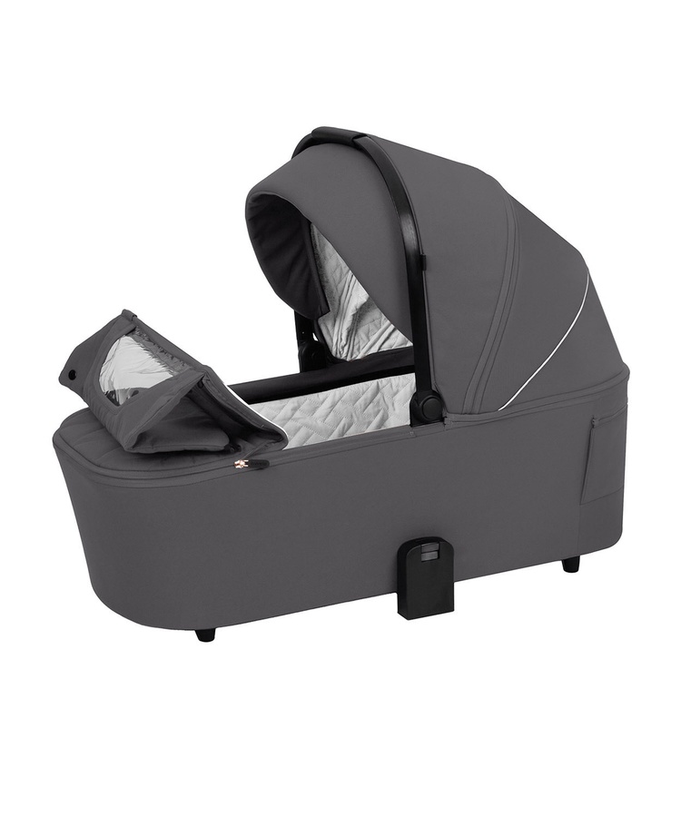 Prenosna košara; Aerodinamični otroški voziček Carrello Ultra 2 v 1 ima globoko streho za zaščito vašega otroka pred soncem in vetrom. V notranjosti so bombažne tkanine, ki jih je mogoče odstraniti in oprati. Prezračevanje je dobro premišljeno za vroče dni z dvema vgrajenima mrežastima okencema: eno v nadstrešku in eno na zadnji strani globoke košare. Topla prevleka za noge z visokimi stranicami bo poskrbela za udobje v hladnem vremenu. Priročen ročaj za prenašanje, enostavna namestitev in odstranitev s šasije ter posebne noge na dnu nosilca omogočajo mobilnost in enostavno uporabo.