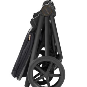 Elegantna in prostorna torba je opremljena z varnostnimi pasovi s pettočkovnimi točkami, odstranljivimi, vrtljivimi odbijači in preprečevanjem, da bi se otrok zdržal po prezračevalniku naslonjalo za hrbet in noge imata tri nastavljive položaje: sedeč, napol nagnjen in popolnoma nagnjen sedež ima nastavljivo višino in se lahko nastavi v enega od treh položajev. Gumb za zaklepanje nastavitve se nahaja na zunanji strani naslonjala. Okvir se skupaj s sedežno enoto kompaktno zloži v sistemu “knjiga”. Kolesa in pnevmatike velikega premera iz inovativnega penastega poliuretana s trpežno tekalno površino zagotavljajo udobno vožnjo po neravnih površinah v vseh letnih časih. Gladko vožnjo zagotavlja vzmetenje na vsakem kolesu. Sprednja kolesa je mogoče blokirati v ravnem položaju za boljši oprijem na neravnem terenu. Vsa kolesa so hitro zapenjajoča.