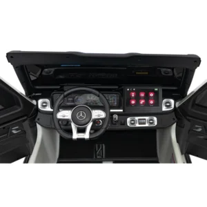 Specifikacija Motor 2x280W – nova tehnologija Baterija 24V7-10Ah x2 Pilotska 2.4GHz, 3 hitrosti, Gumb za varnostni zastoj, Kolesa Kolesa iz EVA pene, 34x12cm, Amortizerji 2 x zadaj Dirke Počasen zagon, Spredaj / zadaj 2 hitrosti. Luči Svetilke LED, Spredaj, Zadaj, Zgornji Oprema Plošča zvoka FM radio, Snemljiv MP4, Bluetooth, Gumbi za zvok in rog na volanu, Predhodno naložene melodije, Indikator polnjenja DA Sedež Eko-usnje, Varnostni pasovi, 53x22x36cm Prtljažnik Pod pokrovom – 45x35x24cm Odpiranje vrat Da Dimenzije Velikost vozila Dolžina 159 cm, Širina 97 cm, Višina 81 cm, Teža vozila 47 kg Velikost škatle 148x84x50 cm Teža škatle 54 kg Maksimalna obremenitev 80 kg Odmik od tal 21 cm Dodatna oprema Navodila + komplet za montažo Polnilec Brisalnik z logotipom AMG