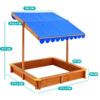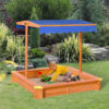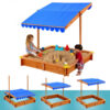 Leseni peskovnik ima pomično streho , ki ne ščiti le pred soncem, ampak ko je popolnoma spuščena, ščiti peskovnik pred umazanijo. Vrtni peskovnik zagotavlja pravo zabavo na prostem za otroke, senca ohranja pesek čist in sonce ne more ustaviti igre. Ker je enostavna za sestavo, se je otroci hitro polastijo. Višina strehe je nastavljiva (do 110 cm). Lesene deske za sedenje potekajo ob 4 straneh peskovnika, tako da se lahko tudi starši med igro udobno namestijo (nosilnost 80 kg.) Streho lahko v celoti spustimo na peskovnik in ga tako zaščitimo pred razno umazanijo po uporabi. Na vogale lahko pritrdite plastične zaščite robov.