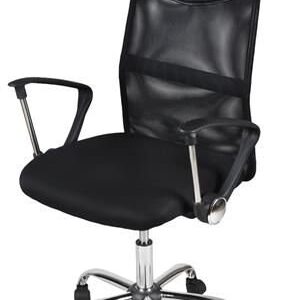 Vrtljiv črn pisarniški stol, prezračevalen. Funkcija TILT vam omogoča zibanje in nagibanje nazaj, kar je zelo sproščujoče. 5-točkovna osnova se enostavno vrti.