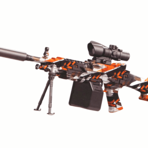 AMT puška z vodnimi gel kroglicami je interaktivna igrača, ki bo poskrbela za mnogo ur zabave in razvedrila. Je model z impresivno skupno dolžino 73 cm, kar mu daje realistično in impresivno estetiko. Poleg tega je pištola okrašena s pisanim oranžno-črnim vzorcem z dodatkom bele barve, kar ji daje privlačen videz. Pištolo napajata dve bateriji, kar omogoča priročno uporabo. Zahvaljujoč uporabi polnilnih baterij vam ni treba skrbeti za pogosto menjavo baterij, kar vam omogoča daljše igranje.