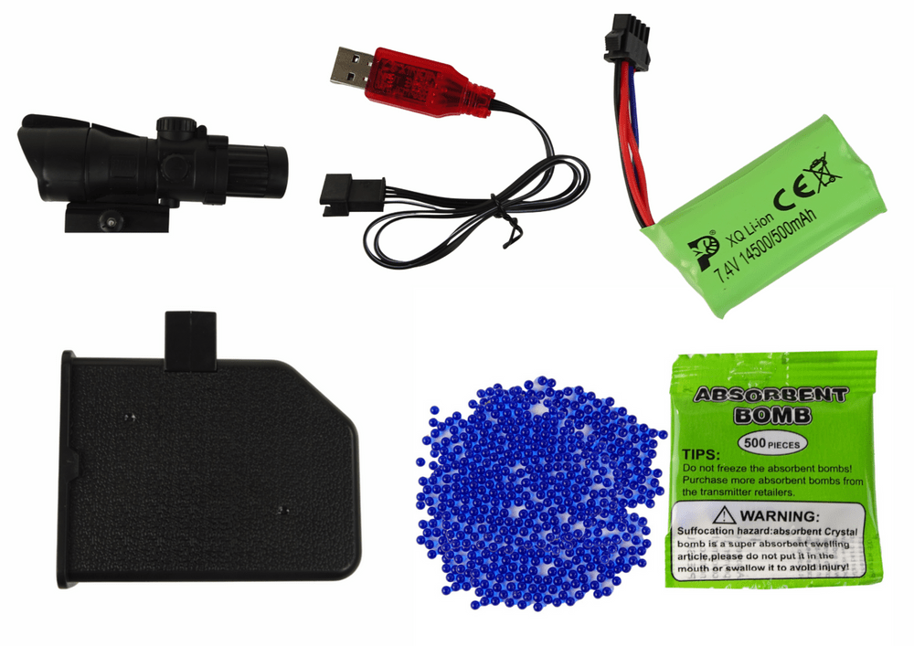 Da so gelne kroglice pripravljene za uporabo, komplet vsebuje posebno posodo za kartuše. Zahvaljujoč njim lahko priročno prenašate in shranjujete strelivo, kar zagotavlja, da bo med igro vedno na voljo.