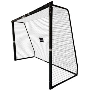Trdno jekleno ogrodje zagotavlja stabilnost med igro, tudi pri močnih udarcih žoge. Pokrov okvirja v elegantni črni barvi ščiti konstrukcijo pred vremenskimi vplivi in daje golu sodoben videz.