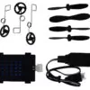 V kompletu so tudi štirje zamenljivi propelerji in kabel za polnjenje baterije.