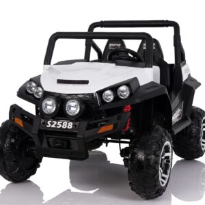 Avto ima kakovostne materiale in izdelavo, 2,4 GHz daljinski upravljalnik . Ima dva zašita usnjena sedeža, zaradi česar je primeren za dva otroka. Mehka kolesa EVA za udobje in vzdržljivost. Avto igrače je opremljeno tudi z žarometi in osvetljenim krovom. 2 gumba modnega zvoka, ki predvaja pop glasbo, predvajalnik glasbe Bluetooth, nadzor glasnosti in zvočnih učinkov. Za varnost otroka je nameščen nastavljiv varnostni pas.