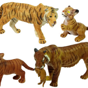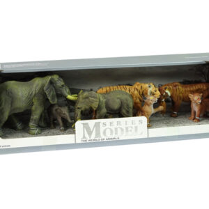 V kompletu je 7 figuric, ki prikazujejo slone in tigre v različnih življenjskih obdobjih, od najmlajših do odraslih živali.