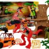 Dinozaver, ki je v kompletu, se napaja z dvema baterijama, oddaja zvoke in ima LED oči. Aktivira se s premikanjem ene od sprednjih nog. Vozilo in pištola z lanserjem omogočata ulov tega prazgodovinskega plazilca. Osnova zavetišča se nahaja v velikem drevesu, na vrhu je prižnica, s katere lahko opazujete okolico.