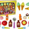 Komplet je sestavljen iz slastnih kolačkov in sladoleda v različnih barvah. Dodatni dodatki, kot so žlice, skodelice ali omake, pomagajo ustvariti vzdušje majhnega srečanja s sladkarijami. Slastne dobrote v pastelnih barvah so zelo realistične in bodo zagotovo navdušile vsakega malega kuharja. S pomočjo posebne žlice za sladoled otrok namesti izbrano kepico in ustvari svoje sladice.