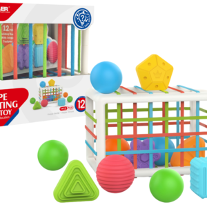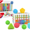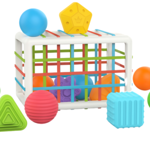 Barvita interaktivna kocka je več igrač, povezanih v obliki kocke, ki bo s svojimi prijaznimi barvami spodbudila k igri vsakega dojenčka. Vsaka stranica kocke ima barvne povezave. Otroci eno za drugo potisnejo mehke oblike v senzorični koš ali iz njega skozi elastične trakove. Mehke in prožne vrvice jih lahko potegnejo in deformirajo, kar je popolnoma varno za vašega malčka.