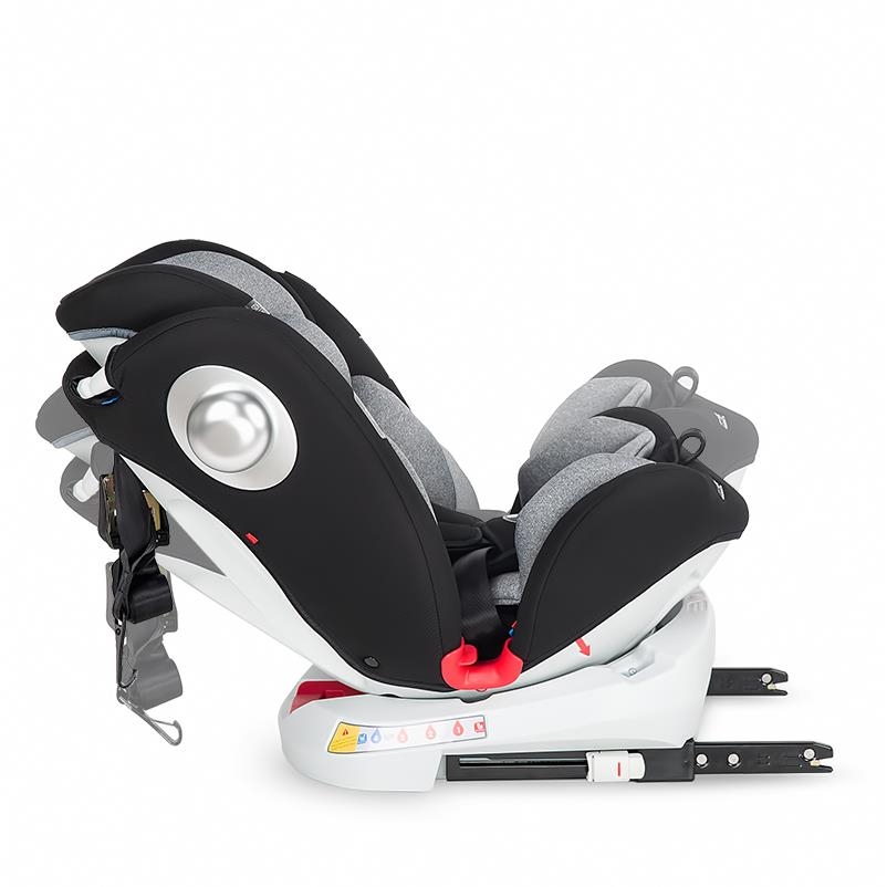 Sprednja kolesa športnega vozička so opremljena s sistemom vzmetenja in vrtenja, ki zagotavlja nemoteno vožnjo. Zadnja kolesa imajo vgrajeno dvojno zavoro za varno parkiranje. Način zlaganja je intuitiven in enkrat zložen ima izdelek zelo kompaktno velikost, idealen za potovanja in omejen prostor za shranjevanje.