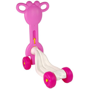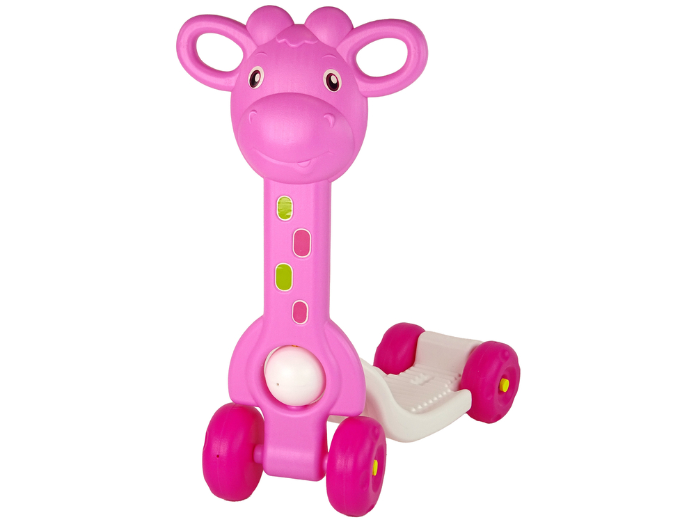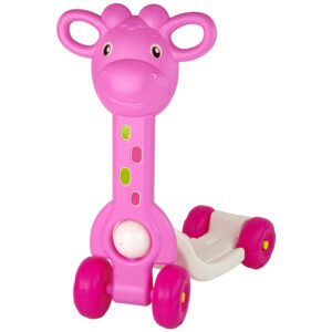 Varen in stabilen štirikolesni skiro za najmlajše otroke, ki se šele učijo vožnje. Nasmejani obraz žirafe vas spodbuja k igri. Izdelana iz najkakovostnejšega materiala bo navdušila tudi najzahtevnejše otroke. Široka platforma omogoča, da lahko najmlajši uporabniki uporabljajo igračo popolnoma varno. Odlična igrača za vašega dojenčka – skiro ima velika kolesa in široko, varno, nedrsečo ploščad , ki popolnoma ščiti otroka pred padcem. Poleg tega je naš skiro opremljen s širokimi ročaji , kar otroku dodatno zagotavlja udobje in občutek varnosti med igro.