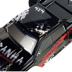 Avto RC vam omogoča nadzor plina in hitrosti. Dva gumba omogočata nastavitev kota krmiljenja. Nasprotno pa stikalo za hitrost v smeri urnega kazalca poveča hitrost vožnje. Izbirnik hitrosti v nasprotni smeri urnega kazalca zmanjša hitrost vožnje. Kovinski blažilniki, napolnjeni z oljem in visoko trdnimi pnevmatikami, so velika prednost.