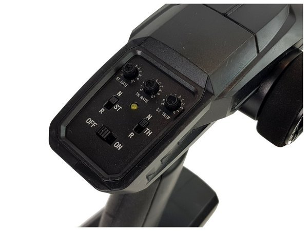 V kompletu je priročen in natančen krmilnik. Če ste že kdaj upravljali profesionalni avtomobil, veste, da vam takšen daljinski upravljalnik omogoča največ užitka v vožnji. Brezžični daljinski upravljalnik, ki je vključen v komplet, deluje na frekvenci 2,4 GHz, zato lahko dirkate v večji skupini brez strahu pred medsebojnimi motnjami.