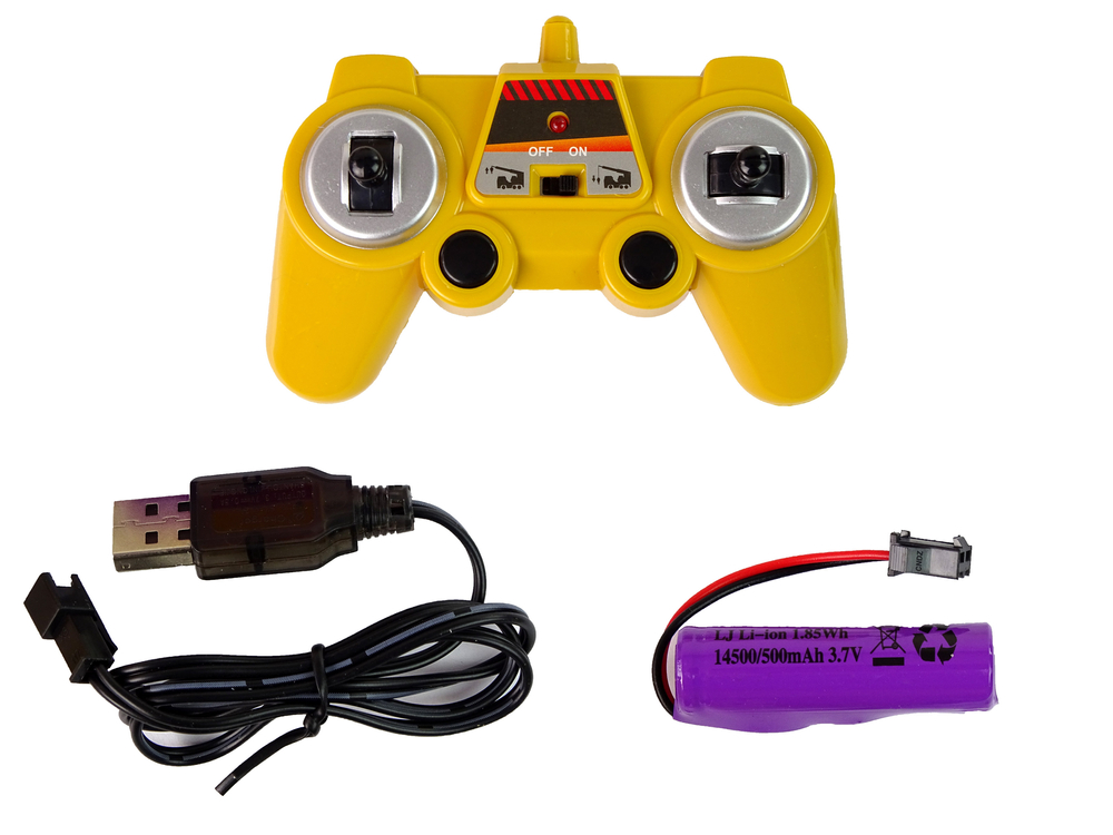Daljinski upravljalnik ima frekvenco 2,4 Ghz, njegovo upravljanje je zelo preprosto, dve igralni palici bosta omogočali udobno manevriranje. Z njegovo pomočjo ga upravljavec lahko usmerja in spreminja smer naprej/nazaj ter desno/levo. Med vožnjo se premika na gumiranih kolesih in LED luči na sprednji strani. Izdelana je v merilu 1:26 in okrašena s črnimi detajli ter značilnimi nalepkami. Kavelj žerjava se spušča in dviguje z daljinskim upravljalnikom. Vrtenje kabine pa se krmili ročno.
