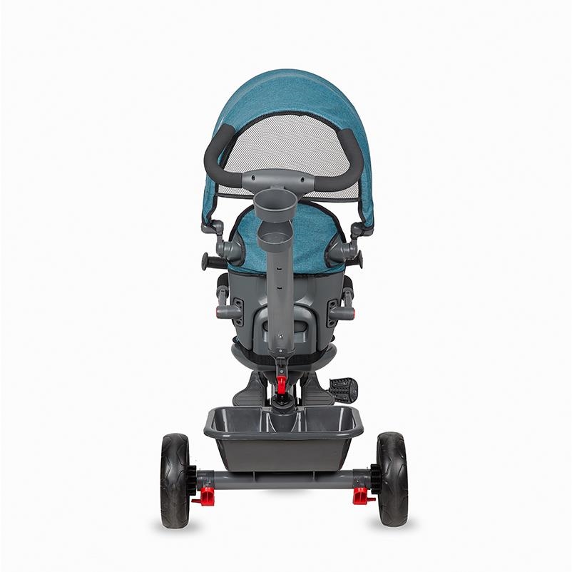 Čeprav se na prvi pogled zdi, da je tricikel Primo elementaren izdelek, boste videli, da gre pravzaprav za večnamenski izdelek, ki je prilagojen potrebam sodobnega otroka. Če bo otrok v prvi fazi tricikel uporabljal kot hibridni voziček, ki ga bo lahko potisnil le starš, bo pri razvoju imel koristi od več prednosti tega izdelka: opora za noge, mehak in udoben vrtljiv sedež, spanje, Nadstrešek z UV zaščito, nedrseči pedali, nagibno krmilo, košara za igrače in držalo za skodelico. Hkrati so kolesa iz pene EVA lahka in trpežna, kar jih omogoča brezskrbno uporabo na kakršnem koli terenu in vam obljublja neomejen čas igranja na prostem.