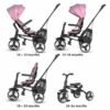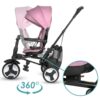 Nadstrešek tricikla nudi UV zaščito, tako da ga lahko uporabljate tudi na najbolj vročih lokacijah. Funkcija prostega kolesa omogoča zaklepanje kolesa, tako da se sprednje kolo ne bo zavrtelo, tudi če mali pedalira, zato uporaba izdelka pri mlajših otrocih ni problem. Funkcija prostega krmila omogoča otroku, da manevrira s krmilom, ne da bi spremenil smer tricikla.