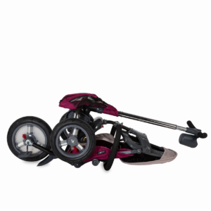 Otrok bo s pomočjo 3-točkovnih varnostnih pasov in zaščitnega odbijača vedno varen, kar med vožnjo ne bo omogočilo padca. Ročaj tricikla je zložljiv, kar omogoča globlji nagib sedeža, medtem ko je obrnjen proti staršu.
