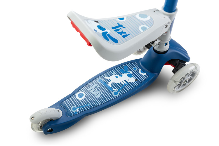 Tixi je trikolesni skiro, ki poskrbi za odlično zabavo za vaše otroke od 3 do 12 let. Omejitev obremenitve do 50 kg. Tixi je izdelek, ki skrbi za gibalni razvoj otroka z zvijanjem, ki se izvaja z uravnovešanjem telesa. Skiro je opremljen z stabilnim ročajem, nastavljivim po višini, in zložljivim sedežem (star 2-3 leta, max 20 kg), s katerim lahko otrok počiva. Skiro ima gumijasta kolesa z vgrajeno lučjo.