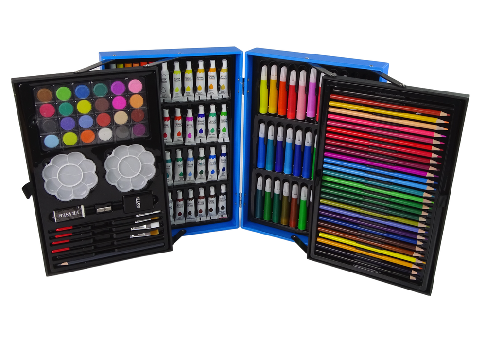 Vsebuje 145 kosov, vključno z barvicami, flomastri, barvami in oljnimi pasteli – idealno za risanje, slikanje in skiciranje.
