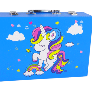 Doživite veselje pri ustvarjanju umetniških del s to popolno 145-delno umetniško zbirko. Shranjena v elegantnem modrem kovčku z motivom samoroga, je ta zbirka idealna za razvoj kreativnosti in domišljije vsakega otroka.