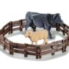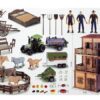 Traktor v kompletu ima frikcijski pogon – samo ga povlecite nazaj in spustite ter opazujte, kako se premika naprej. Prikolica za živali vam bo omogočila prevoz vaših živali iz kraja v kraj. Ko si vzamete odmor od dela, se lahko sprostite ob mizi s stoli, dodatki s hrano in priborom bodo poskrbeli za odlično pogostitev. Velikost ograde za živali je odvisna izključno od vas in od tega, kaj se boste odločili zgraditi.