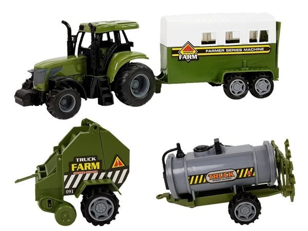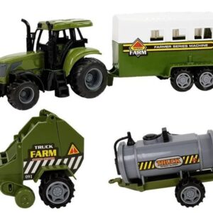Traktor v kompletu ima frikcijski pogon – samo ga povlecite nazaj in spustite ter opazujte, kako se premika naprej. Prikolica za živali vam bo omogočila prevoz vaših živali iz kraja v kraj. Ko si vzamete odmor od dela, se lahko sprostite ob mizi s stoli, dodatki s hrano in priborom bodo poskrbeli za odlično pogostitev. Velikost ograde za živali je odvisna izključno od vas in od tega, kaj se boste odločili zgraditi.