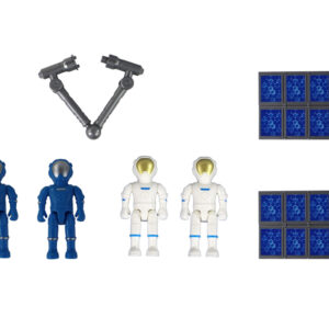 V kompletu so trije astronavti v posebnih vesoljskih oblekah, ki se odpravijo na vesoljske misije.