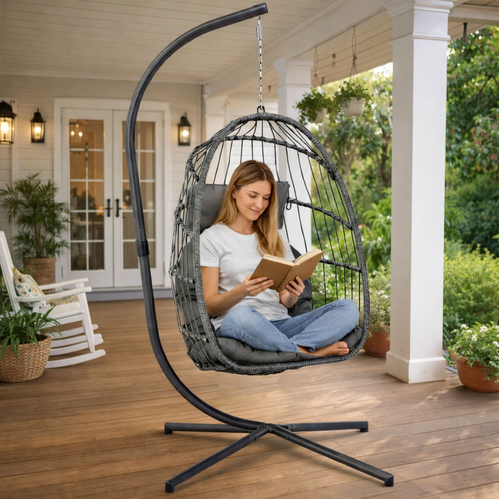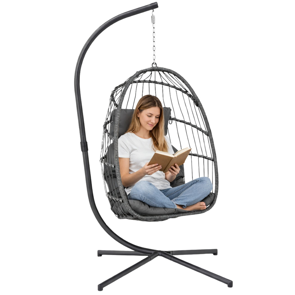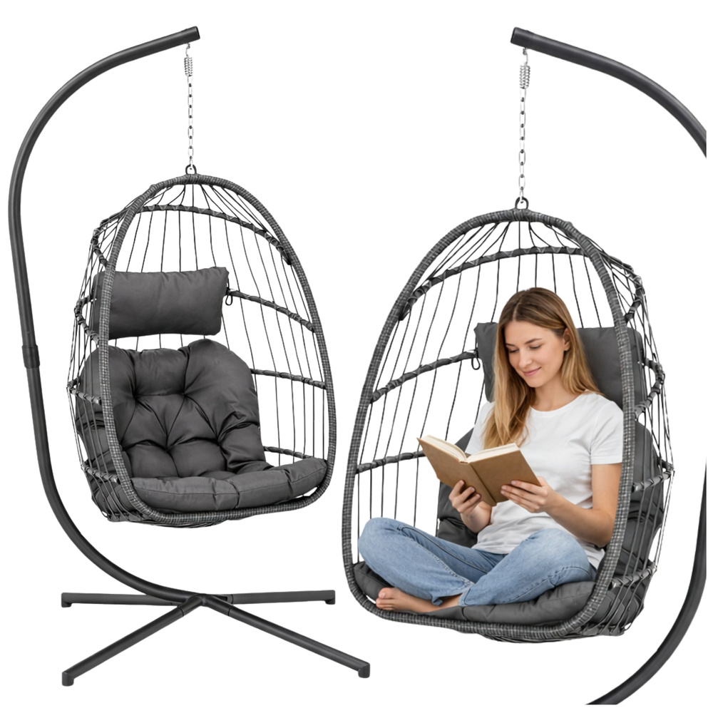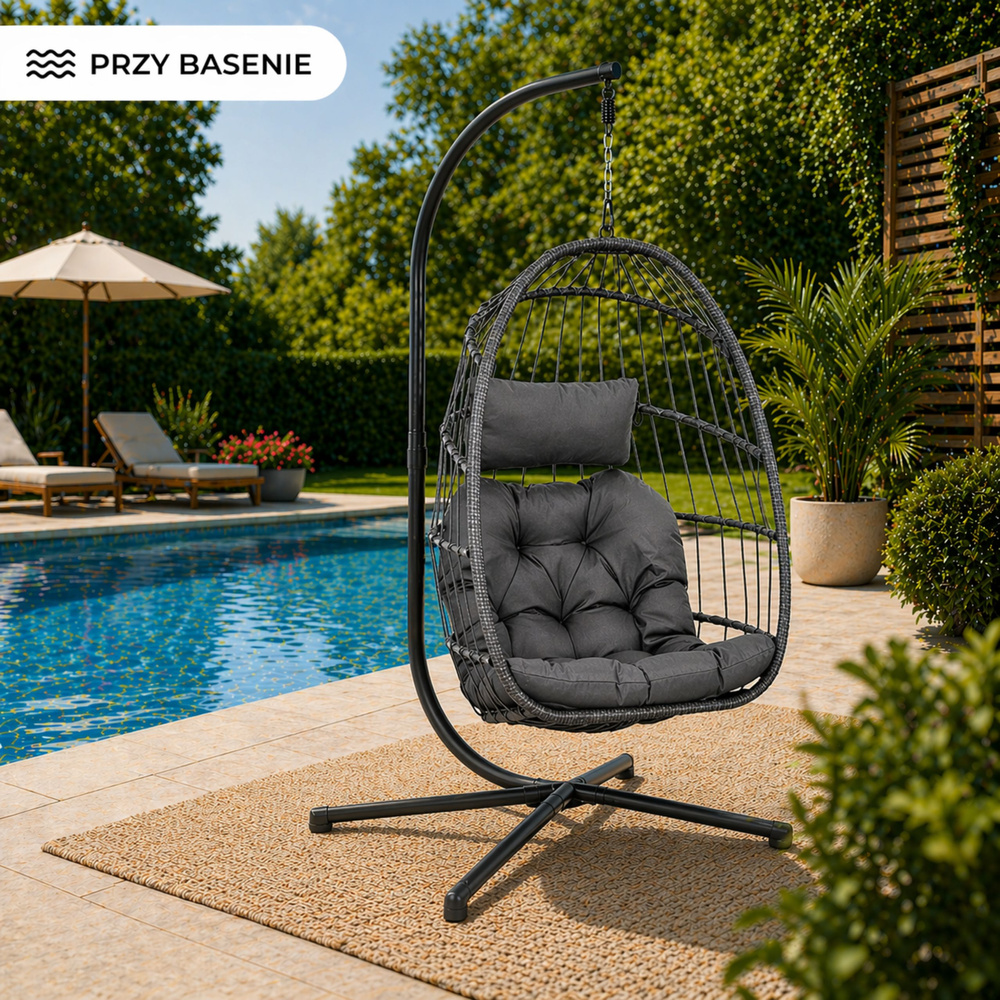 Viseči stol LEAN cocoon v sivi barvi je eleganten in funkcionalen kos pohištva, ki zagotavlja izjemno udobje na vrtu, terasi, balkonu ali v zaprtih prostorih. Njegova moderna oblika v obliki kokona ustvarja prijeten prostor za sprostitev, ki vam omogoča, da se sprostite in sprostite po dolgem dnevu. Je idealna rešitev za tiste, ki cenijo udobje in estetsko privlačnost.