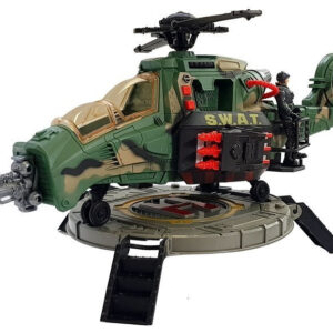 Komplet za majhnega vojaka je v umirjenih, vojnih barvah, kar omogoča lažje kamuflažo in skrivanje nevarnega sovražnika. Helikopter je precej velik, poleg tega pa ima zvočne signale, ki bodo popestrili vsako zabavo.
