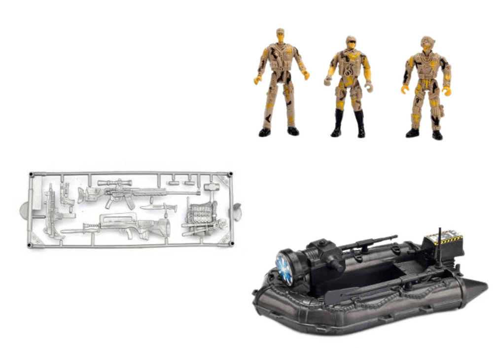 Ponton je črne barve, kar kompletu doda raznolikost in možnost ustvarjanja scenarijev vodnih nalog. Figurice vojakov so skrbno izdelane, s številnimi detajli, kar povečuje realističnost igre. Figurice so prilagodljive, kar omogoča njihovo namestitev v različne položaje, npr. med streljanjem ali vožnjo z vozili.