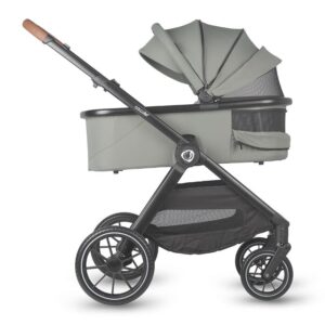 Velika vzmetena kolesa in nakupovalna košarica dopolnjujejo ta eleganten izdelek, vendar tako primeren za izzive novega starša.