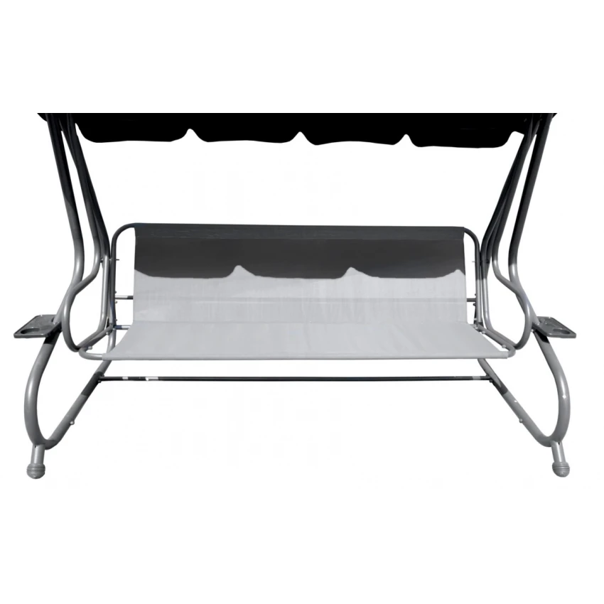 | Sedež je izdelan iz materiala Textiline s tkanjem 2×1. Material, iz katerega je izdelana mreža, je izdelan iz poliestrske preje, prevlečene z vinilom. Textiline je namenjen zunanji uporabi zaradi visoke odpornosti na težke vremenske razmere. Mreža je izredno fleksibilna in odporna na raztezanje, kar dodatno vpliva na udobje uporabe, sam material pa se ne deformira. večstopenjska gladka regulacija vizirja, prevleka za vizir iz poliestra z visoko težo 180g. zložljiv udoben sedež, ki se lahko uporablja tako za sedenje kot za ležanje, 4 ločeni sedeži, polnjeni z gobo za oblazinjenje, ca. 6 cm širine, 2 podstavka za pijačo, pritrditev gugalnic na vzmeti, konstrukcija iz prašno lakiranega jekla, kvalitetni zvari, visoka odpornost na vremenske vplive, na konicah nog masivna nedrseča guma, enostavno vzdrževanje čiste, sedežne prevleke iz poliestra z težo 160g., največja obremenitev 300kg., |