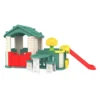 | Specifikacija | Vrtna hiška s toboganom, košarkarsko žogo in vrtom z mizo zelena |