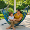 Domov | Za vso družino | Vrtna viseča mreža z okvirjem za dve osebi, zelena in modra, 200×120