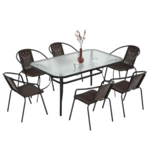 Domov | Za vso družino | Vrtno pohištvo | Vrtni komplet pohištva za teraso, steklena miza 150×90, stoli 6 kosov, rjave barve