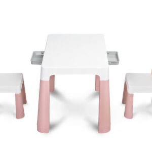 Monti je vsestranska otroška miza s stoli. Z njegovo pomočjo si enostavno ustvarite kotiček za umetniško delo ali zabavo tako doma kot na prostem. Komplet je izdelan iz visokokakovostne plastike – varne in odporne na razne vremenske muhe in divjad. Miza in stoli so lahki, tako da jih lahko otrok nosi sam. Zahvaljujoč enostavni zasnovi je Monti mogoče enostavno sestaviti – elemente preprosto stisnite skupaj. Miza ima 2 predala, ki se skrivata pod mizno ploščo, možno pa je tudi znižati višino za 6 cm.