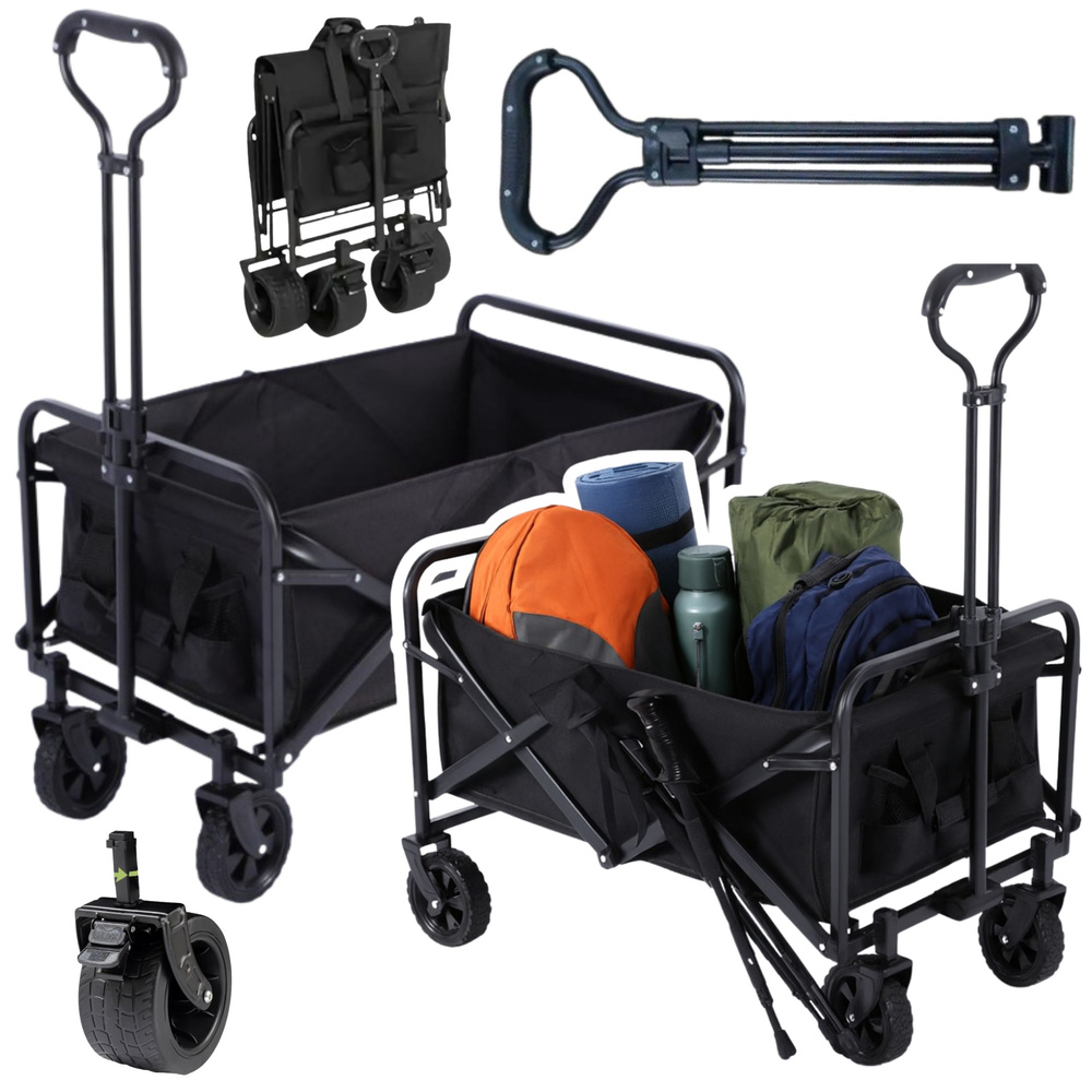 Artikel: Zložljiv vrtni transportni voziček za plažo, črne barve, 120 l