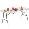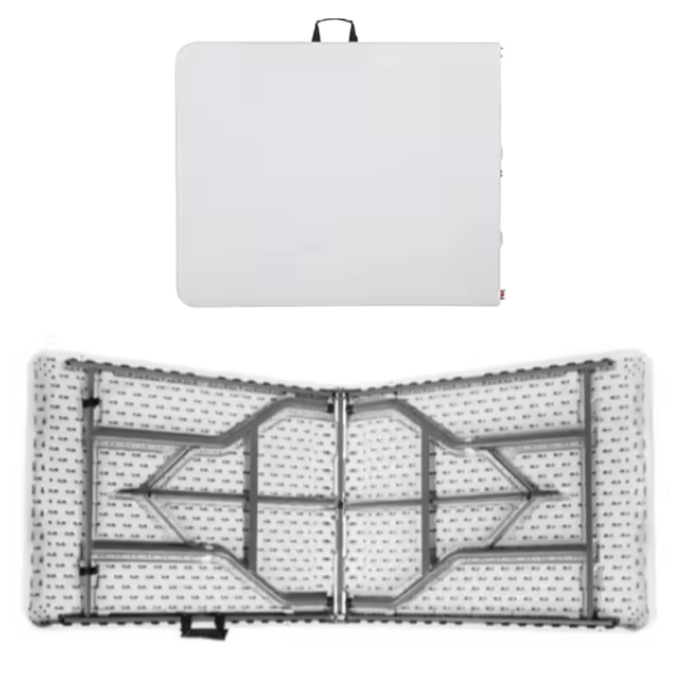 Ta praktična in robustna zložljiva miza, ki meri 180 x 74 cm, je nepogrešljiva rešitev za vse vrste zabav, dogodkov, družinskih srečanj, pa tudi za uporabo doma in na vrtu. Zahvaljujoč možnosti prelaganja na polovico in vgrajenemu ročaju za nošenje je miza izjemno mobilna ter enostavna za prevoz in shranjevanje.