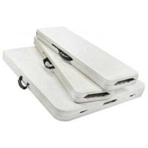 PROTIZDRSNE NOGICE – catering set je opremljen s posebnimi nedrsečimi konicami, ki bodo preprečile drsenje po tleh. Zahvaljujoč njim vam ni treba skrbeti, da se bo miza ob rahlem dotiku premaknila in bo njena vsebina na tleh ali tleh. Gumirane podloge bodo zaščitile tudi tla pred praskami.