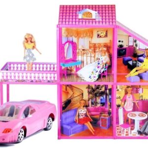Hiša za punčke z roza avtom
