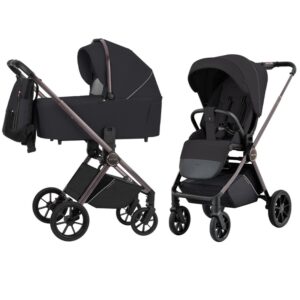 Otroški voziček 2v1 Coccolle Serry Jet črna in stolček za hranjenje Ziti